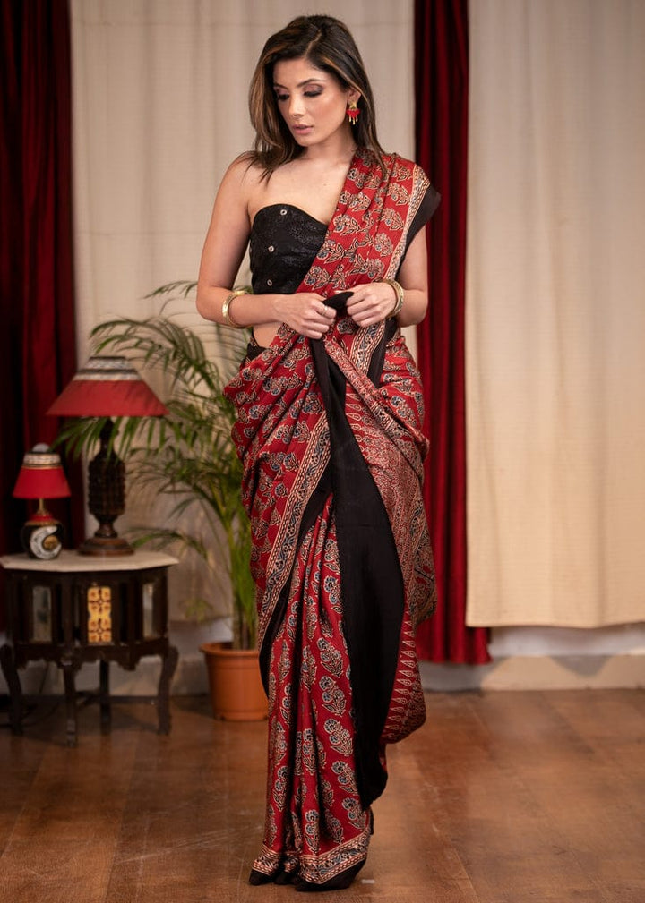 Ajrakh Print Premium Silk fabric Saree With very soft in texture.. Light weight Silk Fabric with a rich glaze .